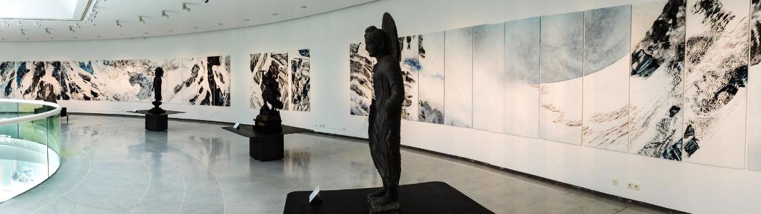 Dans le sillon des Dépaysages, cet ensemble a été conçu pour être montré dans la rotonde bouddhique du Musée des Arts Asiatiques de Nice dessiné par Kenzo Tange, lors de mon exposition personnelle Dans un Monde Flottant en 2021.